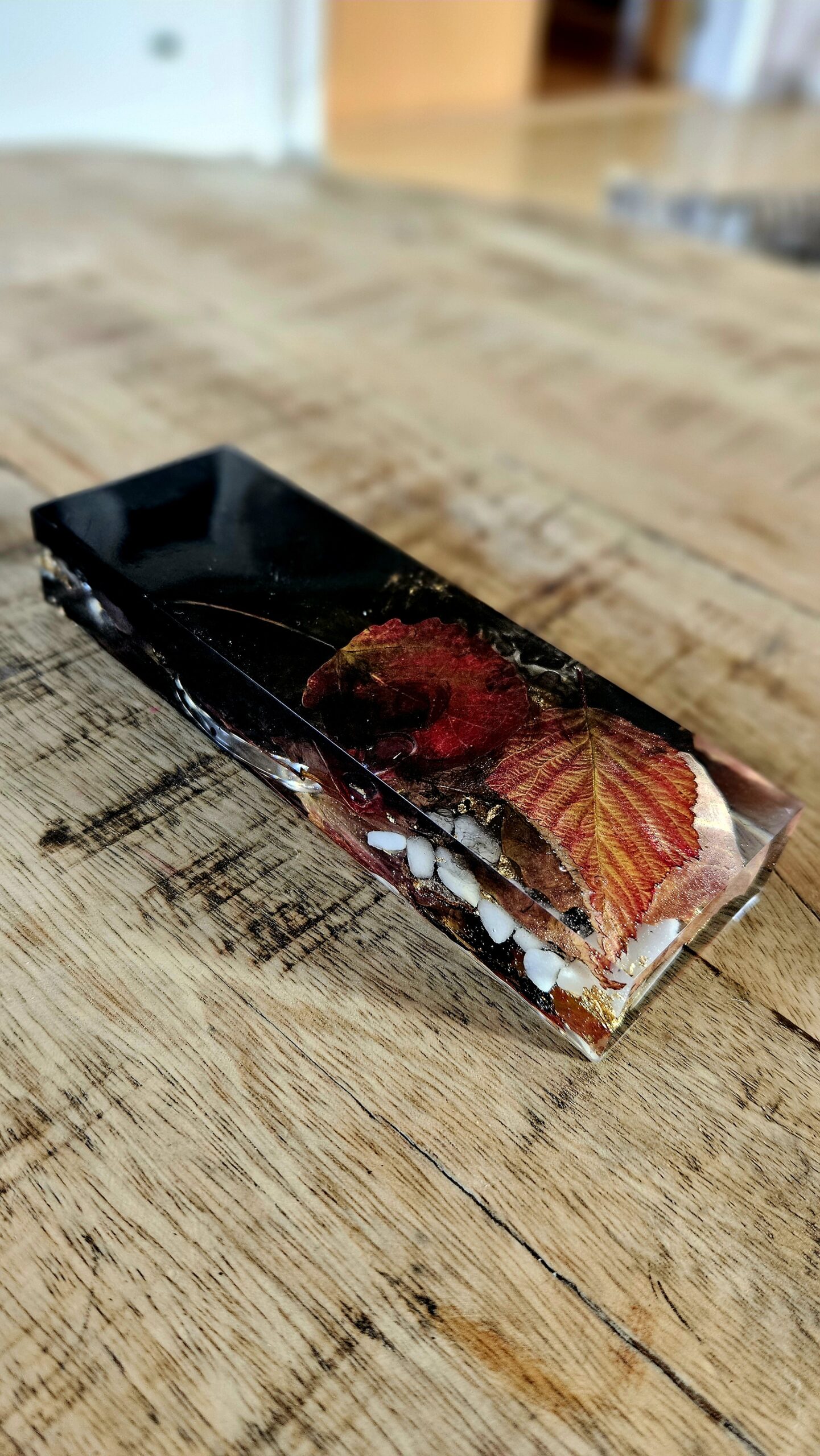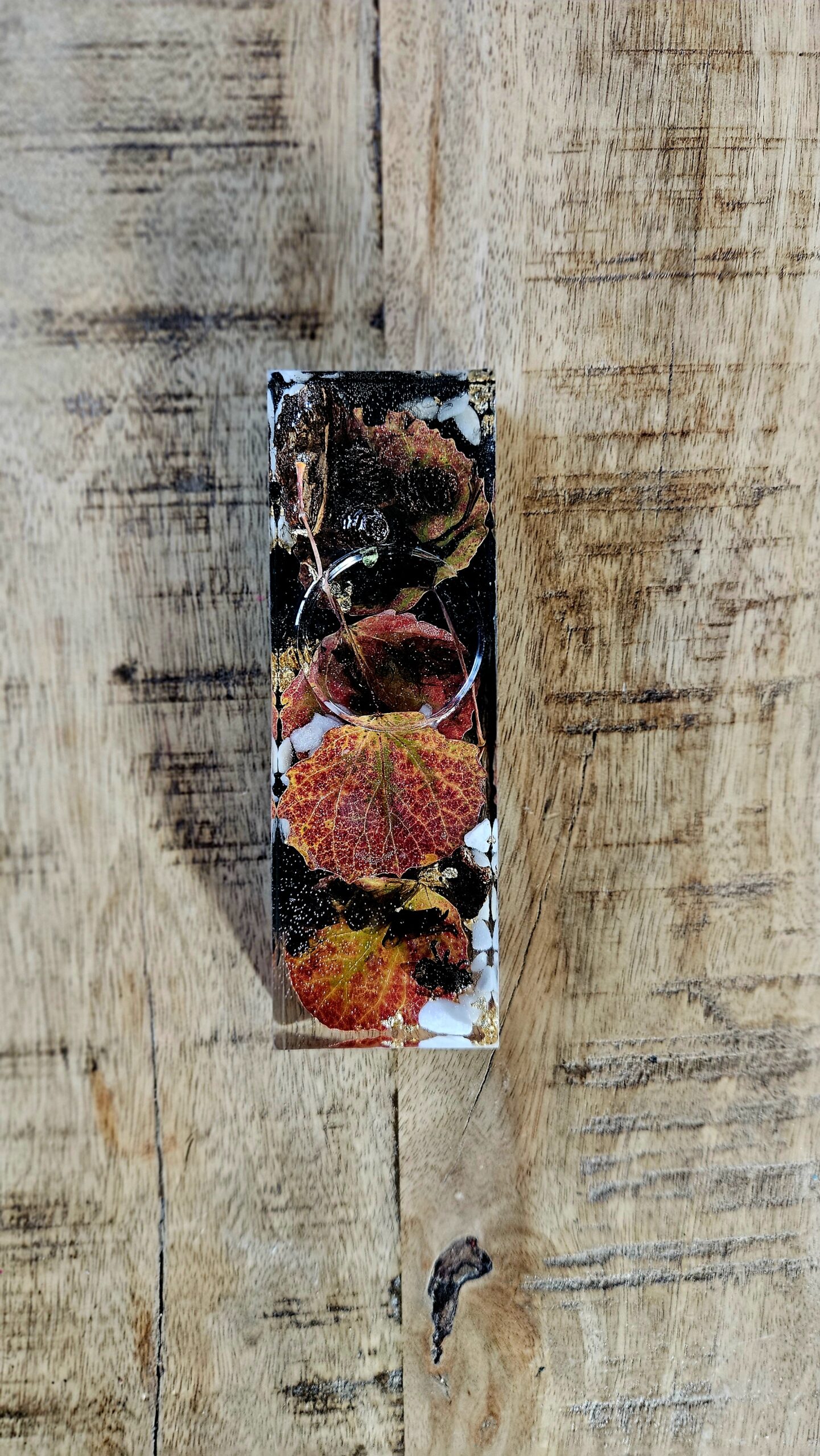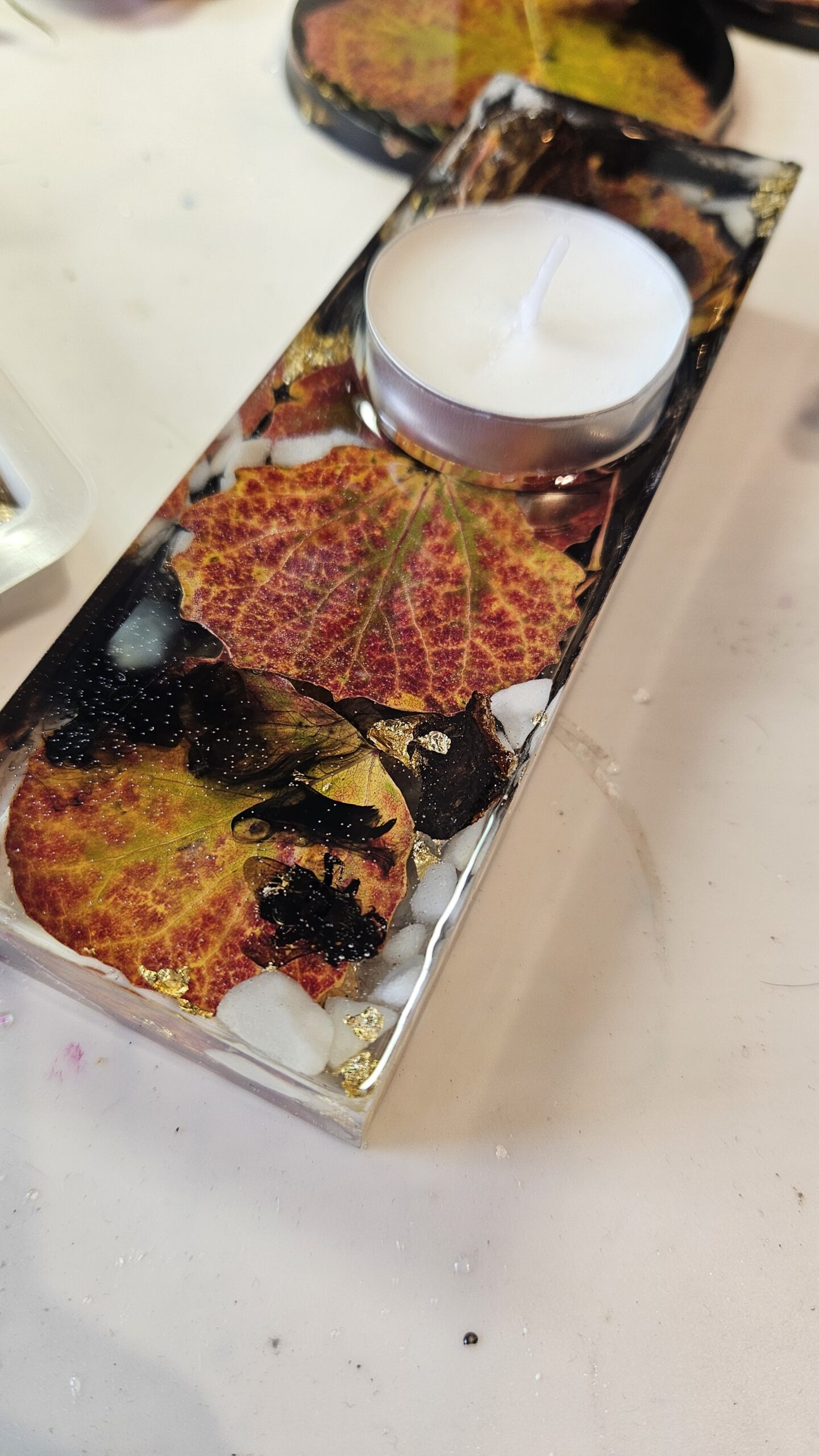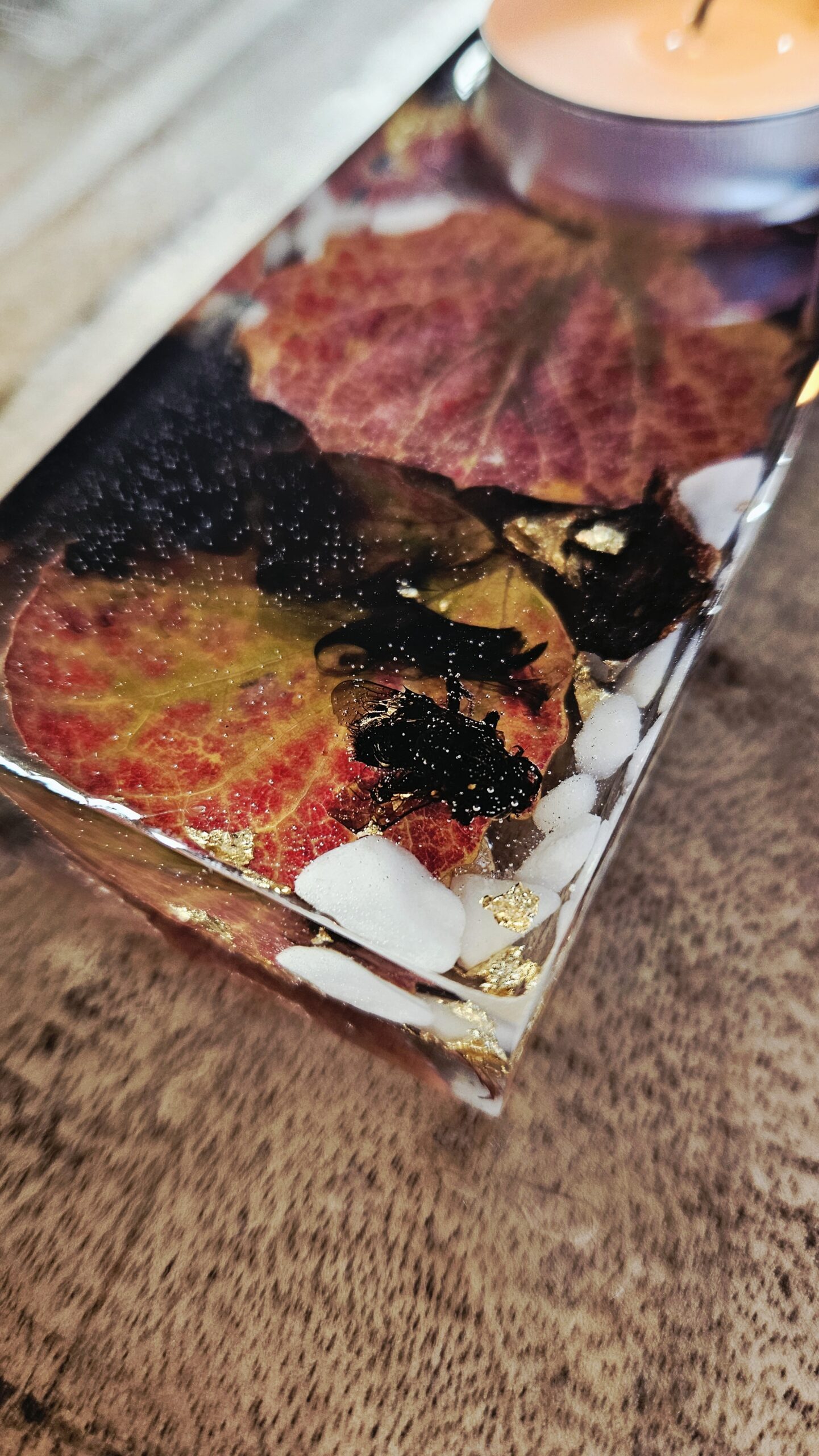 Autumn Leaves candle holder with white stones. 1x tea candle space.