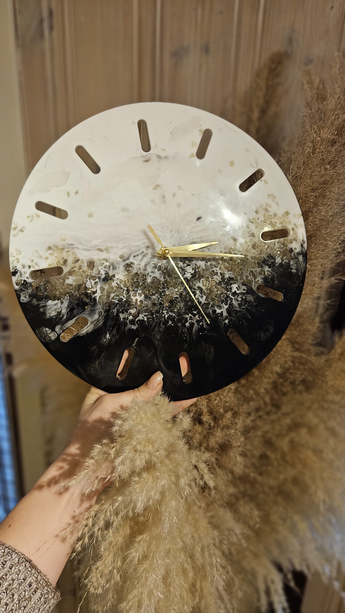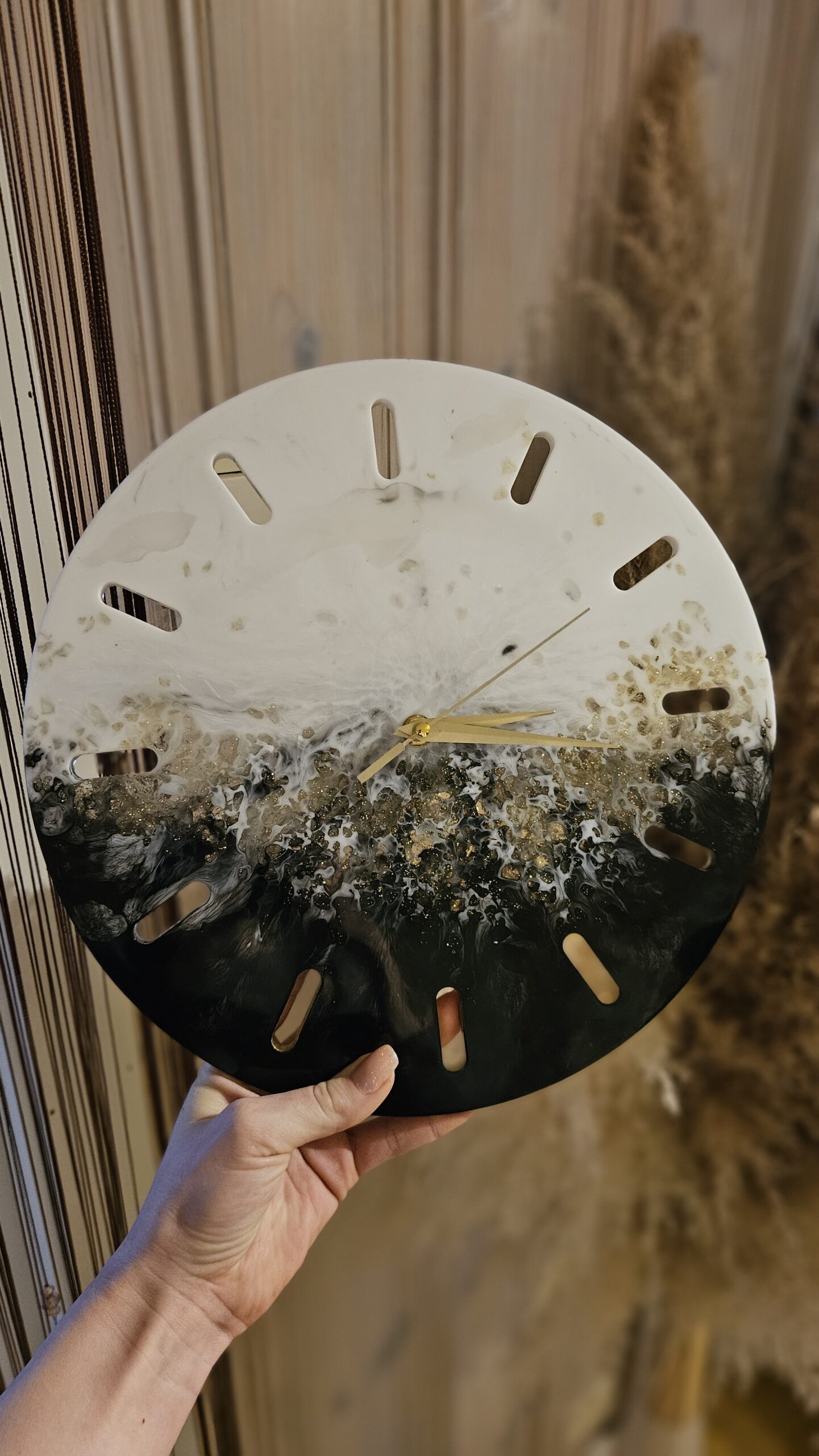 White & Black Golden Stones Wall watch